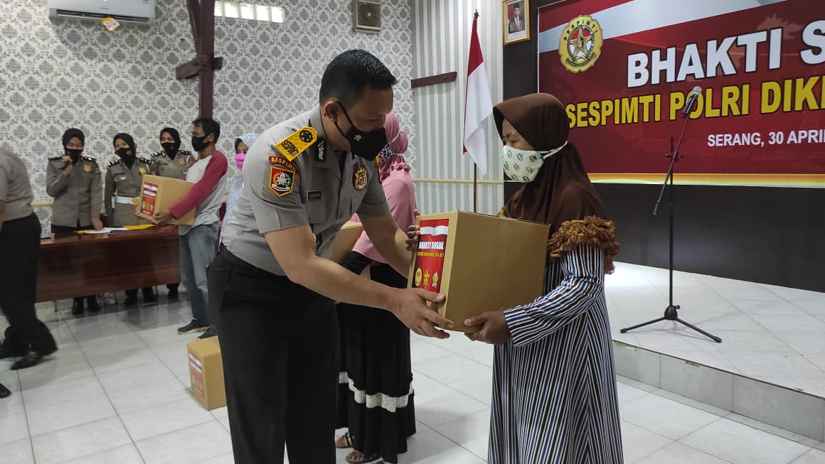 SERANG,- Peserta pendidikan Sekolah Staf Pimpinan (Sespimti) Dikreg 30 tahun 2021 menyalurkan bantuan sembako kepada Warga Kelurahan Cipare, Kota Serang, Banten, Jumat (30/4/2021).
