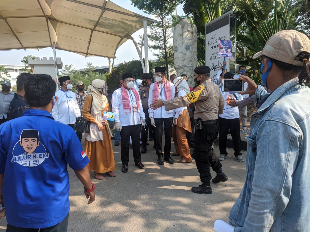 Pantauan wartawan di lokasi, awalnya pasangan calon memasuki lokasi acara dan berlangsung proses penetapan nomor urut. Namun perlahan satu-persatu pendukung Nasrul-Eki memasuki kawasan hotel, padahal menuju masuk dijaga ketat aparat kepolisian.