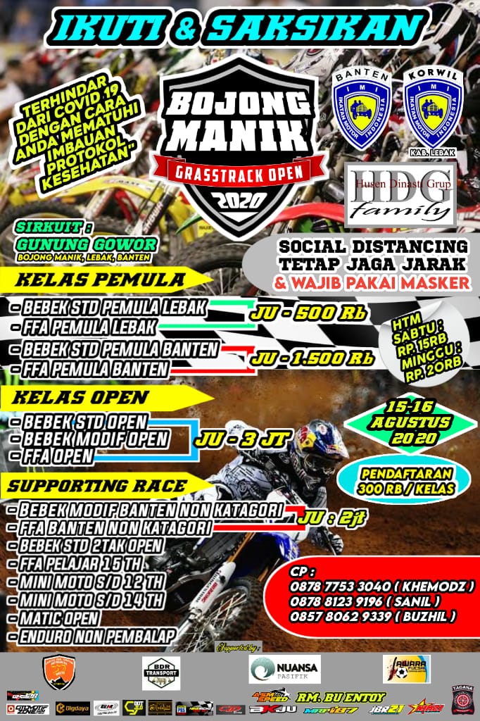 Ajang balapan Grasstrack ini akan di gelar selama dua hari yakni pada 15 hingga 16 Agustus 2020 di Sirkuit Gunung Gowor, Bojongmanik, Kabupaten Lebak, Provinsi Banten.