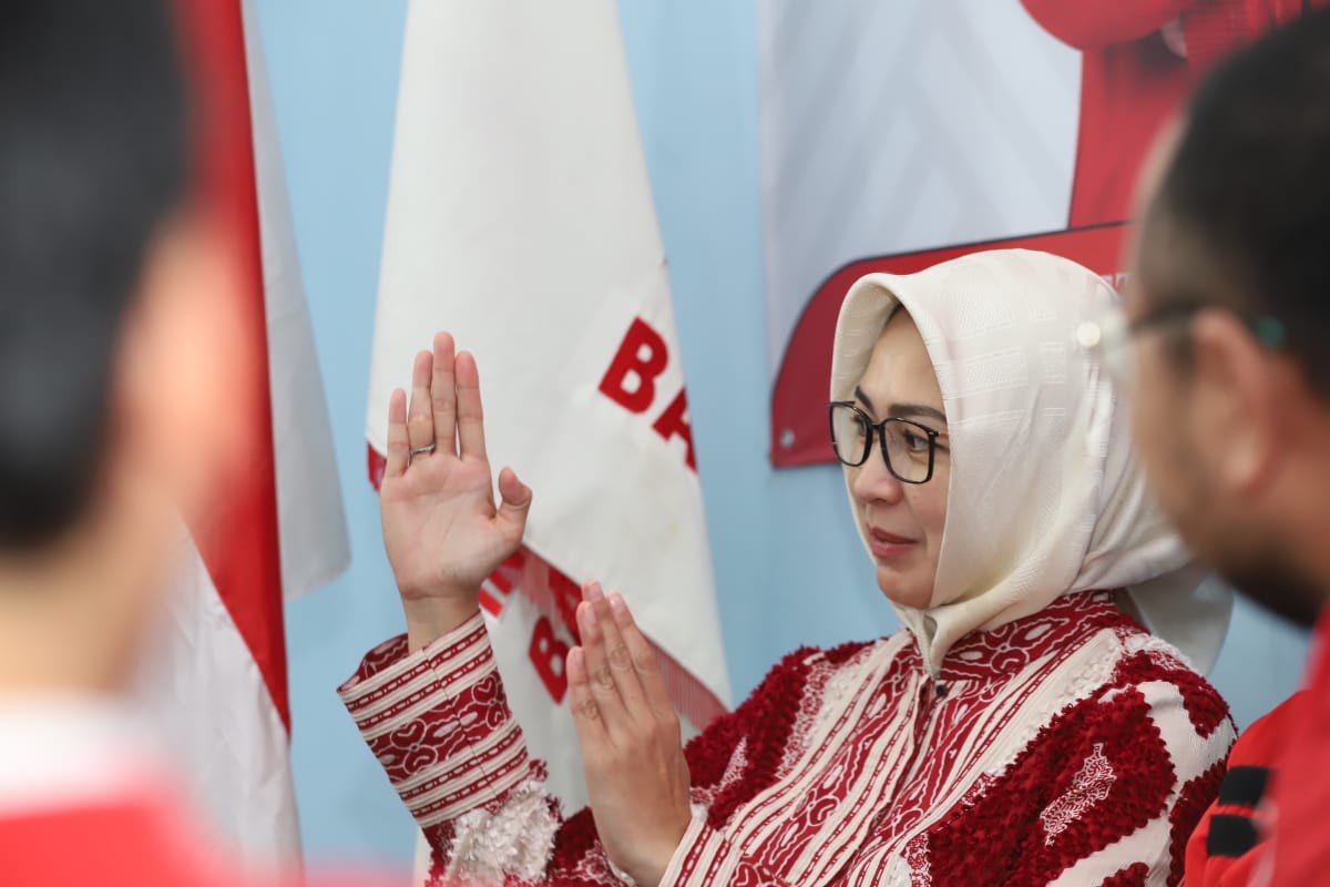 SERANG – Bakal calon gubernur Banten Airin Rachmi Diany resmi mendaftarkan diri pada proses penjaringan di Kantor DPW Partai Solidaritas Indonesia Provinsi Banten, Rabu (8/5/2024).