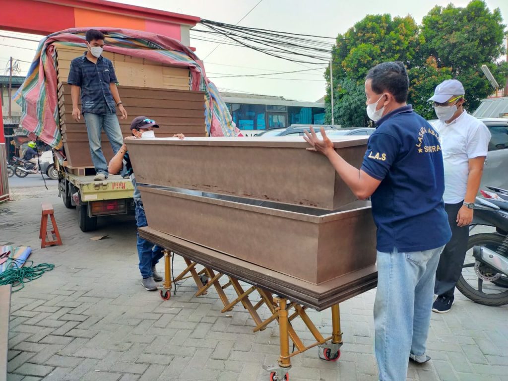 TANGERANG,- PMI Kabupaten Tangerang menyiapkan peti jenazah yang akan diberikan kepada pasien yang wafat karena covid-19 saat isolasi mandiri. Hal itu, sebagai upaya untuk membantu Pemkab Tangerang yang mulai kehabisan stok peti jenazah.