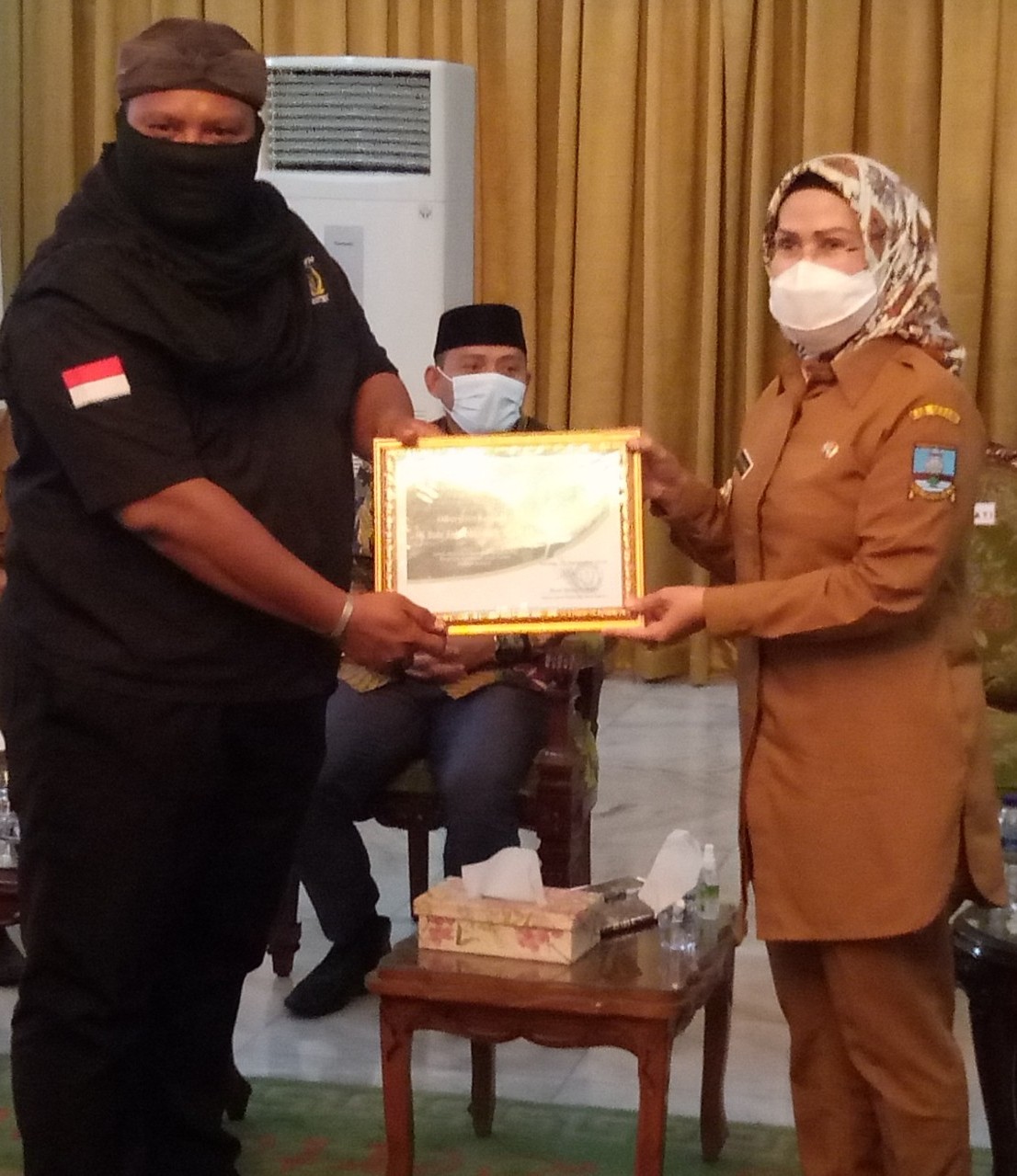 “Kita kasih penghargaan sebagai apresiasi dari kita kepada Bupati Serang Ratu Tatu Chasanah, piagam penghrgaan sebagai pelopor program gerakan orang tua asuh santunan anak yatim,” kata Ketua Umum Ormas Perisai Banten, Rizal usai memberikan penghargaan langsung ke Bupati Serang Ratu Tatu Chasanah..