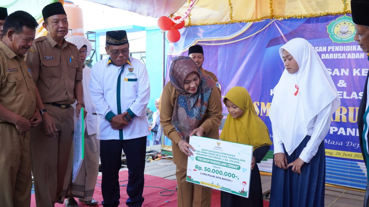 Ketua Baznas Pandeglang Fery Hasanudin mengatakan, bantuan pendidikan ini dalam mendukung pandeglang cerdas, dan merupakan realisasi dari lima program kerja Baznas Kabupaten Pandeglang.