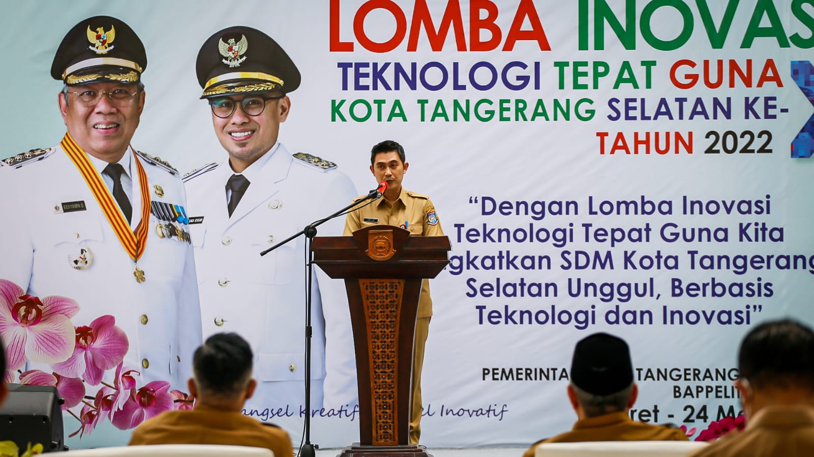 Kegiatan yang mengusung tema Dengan Lomba Inovasi Teknologi Tepat Guna Kita Tingkatkan SDM Kota Tangerang Selatan Unggul Berbasis Teknologi dan Inovasi ini dilaksanakan di Puspemkot Tangsel, Selasa (24/5/2022)