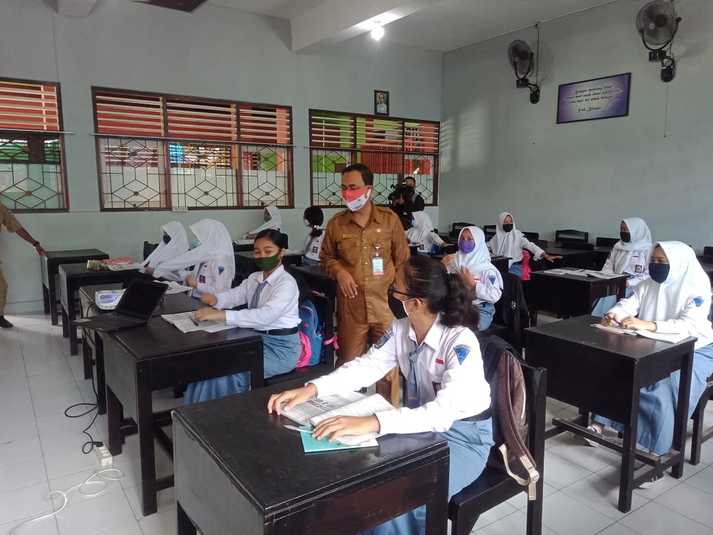 TANGSEL, – Pelaksanaan pembelajaran tata muka (PTM) terbatas jenjang Sekolah Menengah Atas (SMA) sederajat di Kota Tangerang Selatan dimulai untuk kali pertama, Selasa, (07/09/2021).
