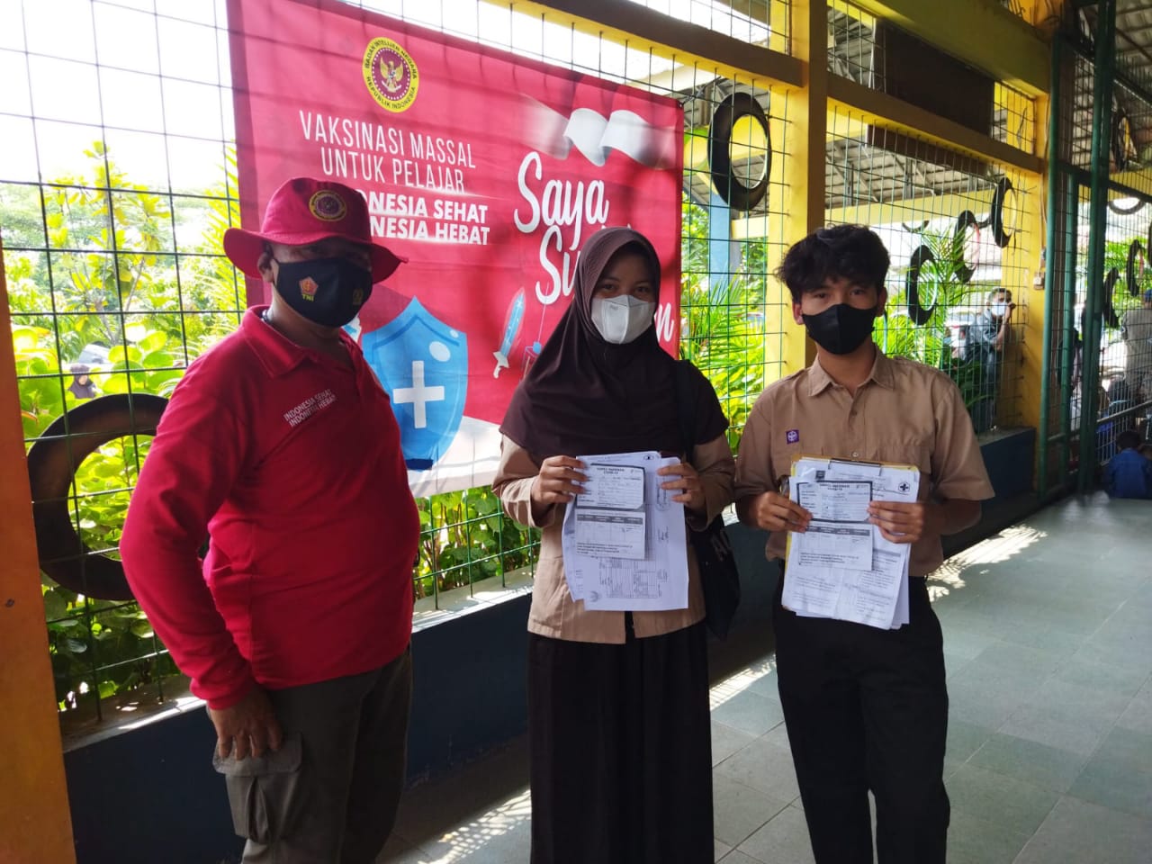 SERANG – Pelajar SMPN 1 Kramatwatu, Kabupaten Serang sudah menjalani vaksinasi hingga dosis kedua. Vaksinasi dilakukan oleh Badan Intelejen Negara (BIN) Banten.