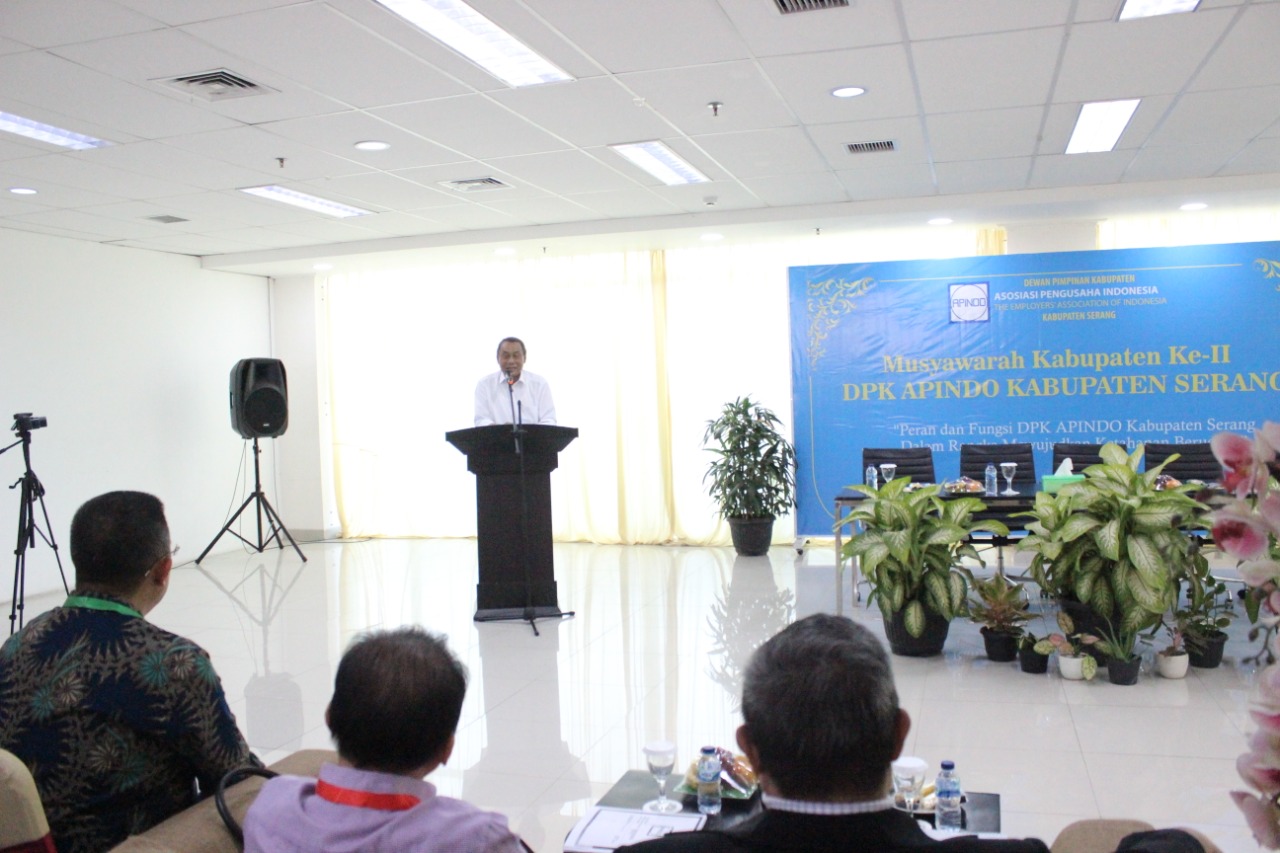 Sementara itu, Ketua Panitia Musyawarah Asosiasi Pengusaha Indonesia (Apindo) Kabupaten Serang, Agus Siswanto mengatakan, musyawarah kali kedua ini dilaksanakan selama lima tahun sekali dihadiri sebanyak 43 peserta mewakili perusahaan anggota dan dewan pengurus. Peninjau sebanyak 15 orang merupakan wakil perusahaan atau calon anggota. “Mari sukseskan Muskab DPK Apindo Kabupaten Serang,” ujarnya.