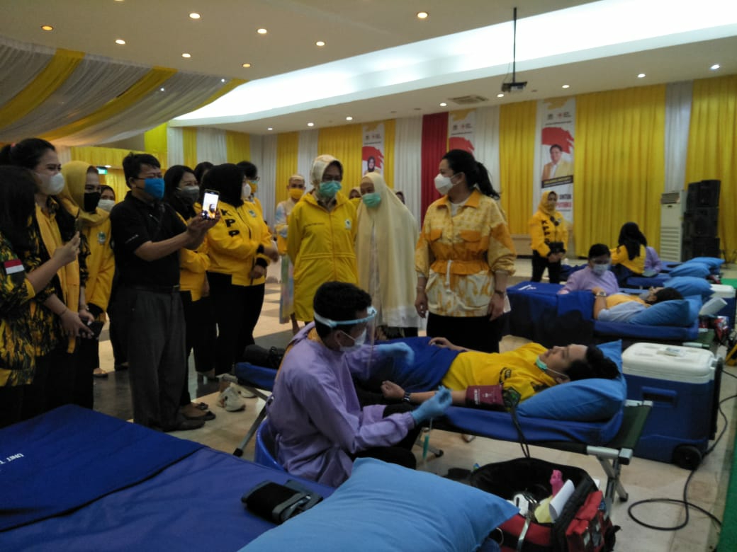 TANGSEL – Pengurus Pusat (PP) Kesatuan Perempuan Partai Golkar (KPPG) menyumbangkan 100 kantong darah k pada Palang Merah Indonesia (PMI) DKI Jakarta, Selasa (25/8). Itu dalam rangka memperingati kemerdakaan Republik Indonesia yang Ke-75.