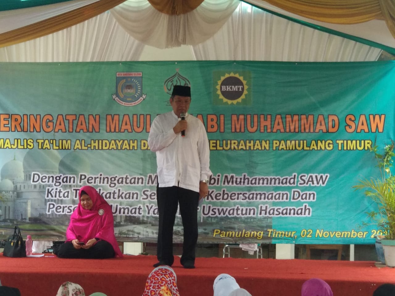 Tangsel – Dalam rangka memperingati Maulid Nabi Muhammad SAW, Wakil Walikota Tangerang Selatan Benyamin Davnie. Mengingatkan warga untuk memperhatikan pendidikan agama bagi anak-anak. Hal tersebut disampaikan saat peringatan Maulid Nabi di lapangan kantor Kelurahan Pamulang Timur, Sabtu (02/11/2019).