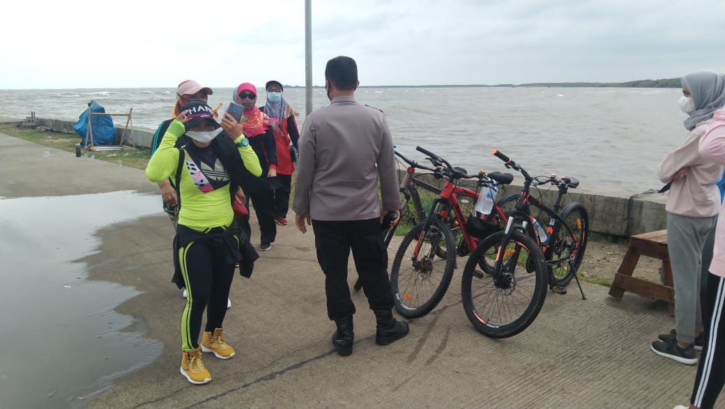 SERANG – Di tengah pandemi Covid-19, Polsek Kasemen, Polres Serang Kota melakukan patroli di kawasan wisata pantai Gope Karangantu, Sabtu 30/1/2021). Patroli guna menegakan protokol kesehatan di masyarakat.