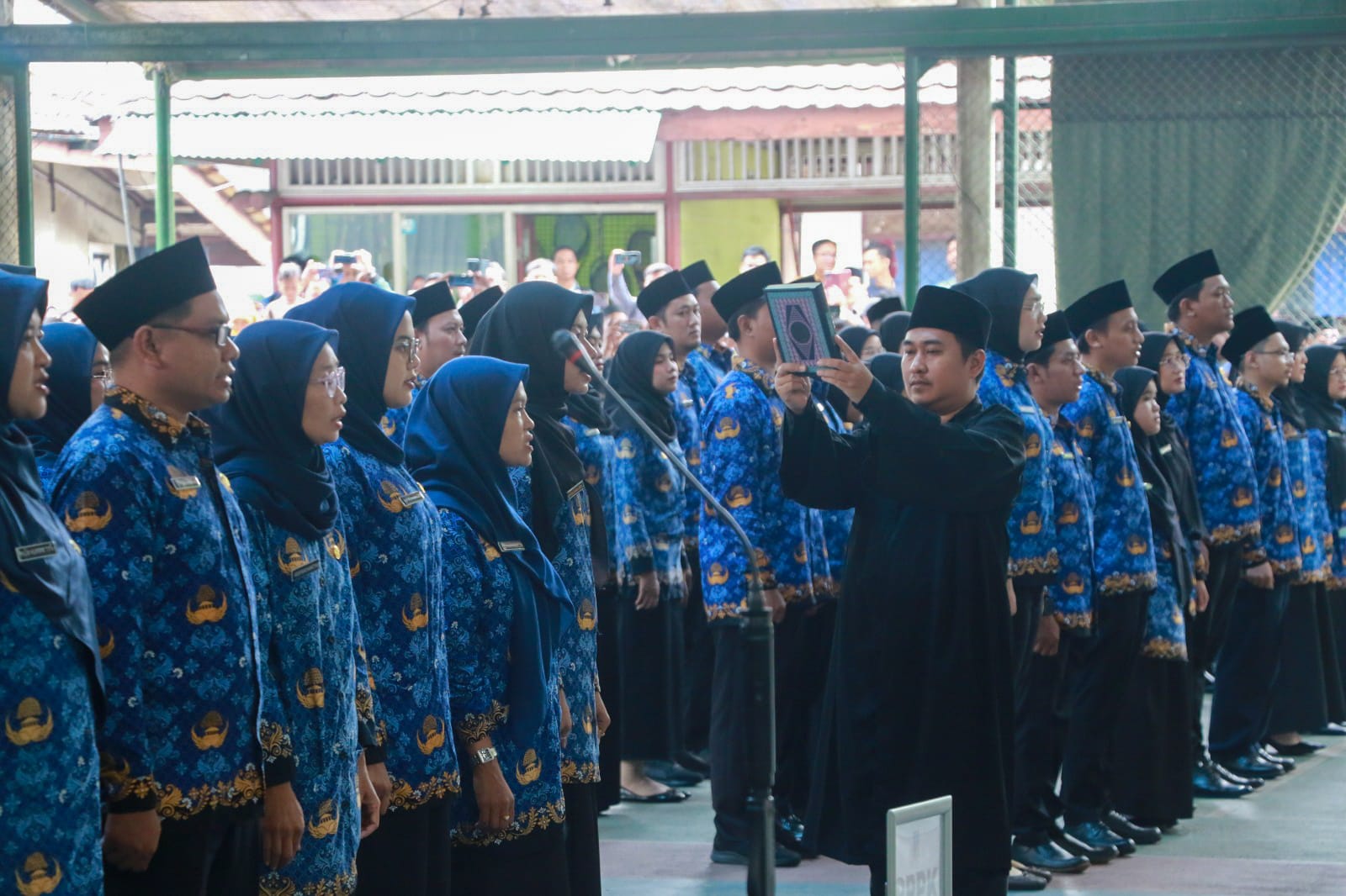 SERANG – Bupati Serang Ratu Tatu Chasanah melantik sebanyak 40 Calon Pegawai Negeri Sipil (CPNS) dan Pengambilan Sumpah Janji Pegawai Pemerintah dengan Perjanjian Kerja (PPPK) Formasi Tahun 2024, serta penyerahan surat keputusan di lingkungan Pemerintah Kabupaten (Pemkab) Serang di Lapangan Tenis Indoor pada Selasa, 15 April 2025.