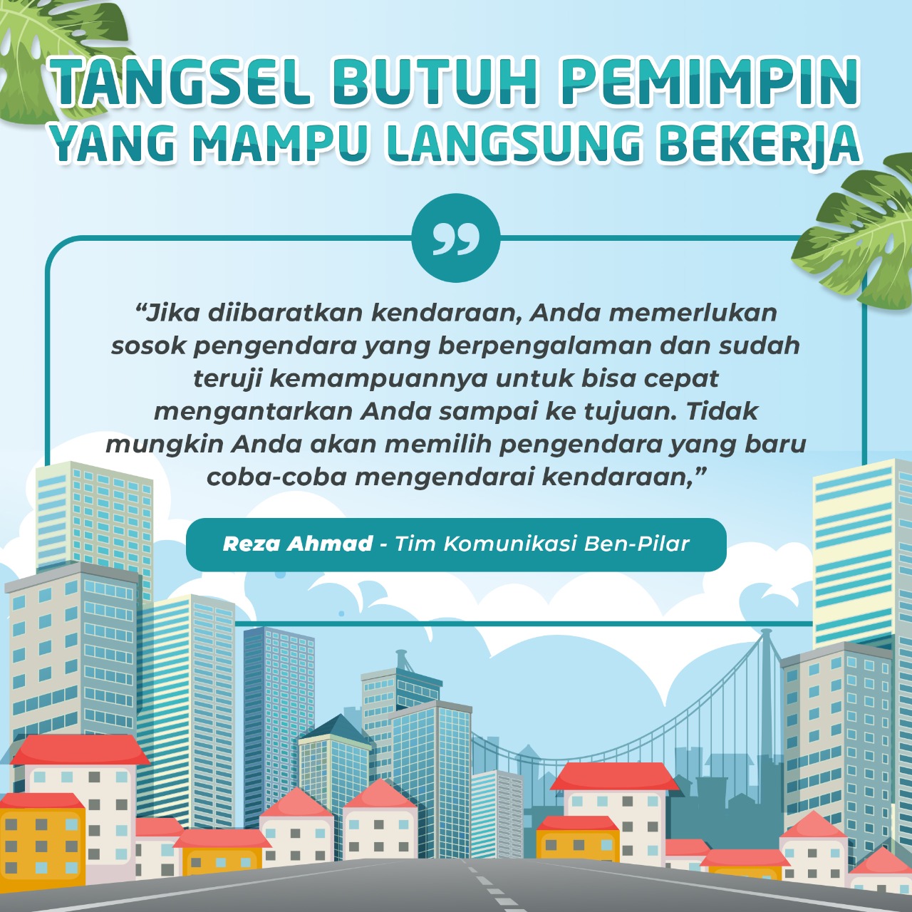 Tangsel – Tim Komunikasi Calon Walikota dan Wakil Walikota Tangerang Selatan Benyamin Davnie-Pilar Saga Ichsan, Reza Ahmad, menyatakan Tangsel memerlukan pemimpin yang mampu langsung bekerja, tanpa perlu beradaptasi dengan lingkungan pemerintahan.
